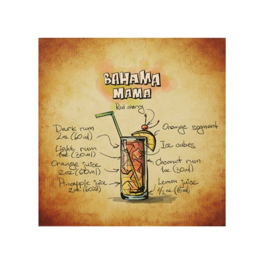 Bahama Mama Cocktail Rezept Holzwanddeko Zazzle De