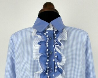 Damenbluse Et Volant Blautone Gr 34 36 Hemds Up