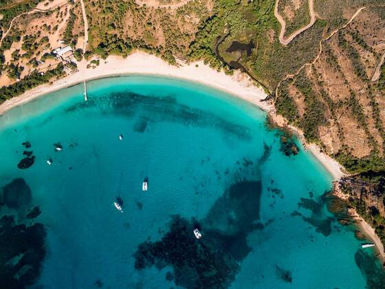 Stockfoto Aerial View Of The Splendid Rondinara Beach