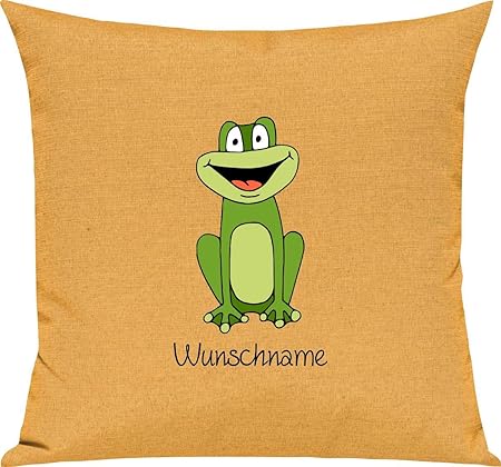 Shirtstown Kinder Kissen Lustige Tiere Frosch Mit Wunschnamen Kuschel Deko Spruch Spruche Farbe Gelb Amazon De Kuche Haushalt