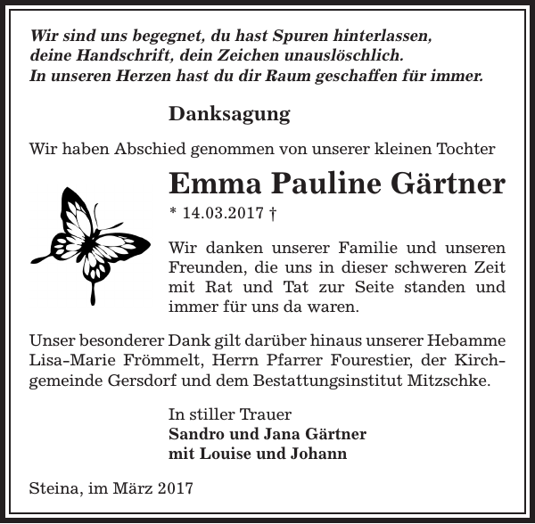Emma Pauline Gartner Danksagung Sachsische Zeitung