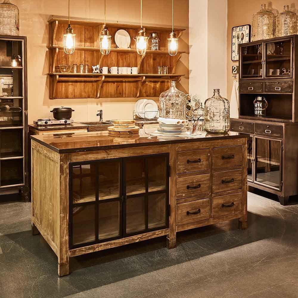 Homy Kucheninsel 8 Schuben 8 Kisten Massivholz Ulme Alt Luedoc Amazon De Kuche Haushalt