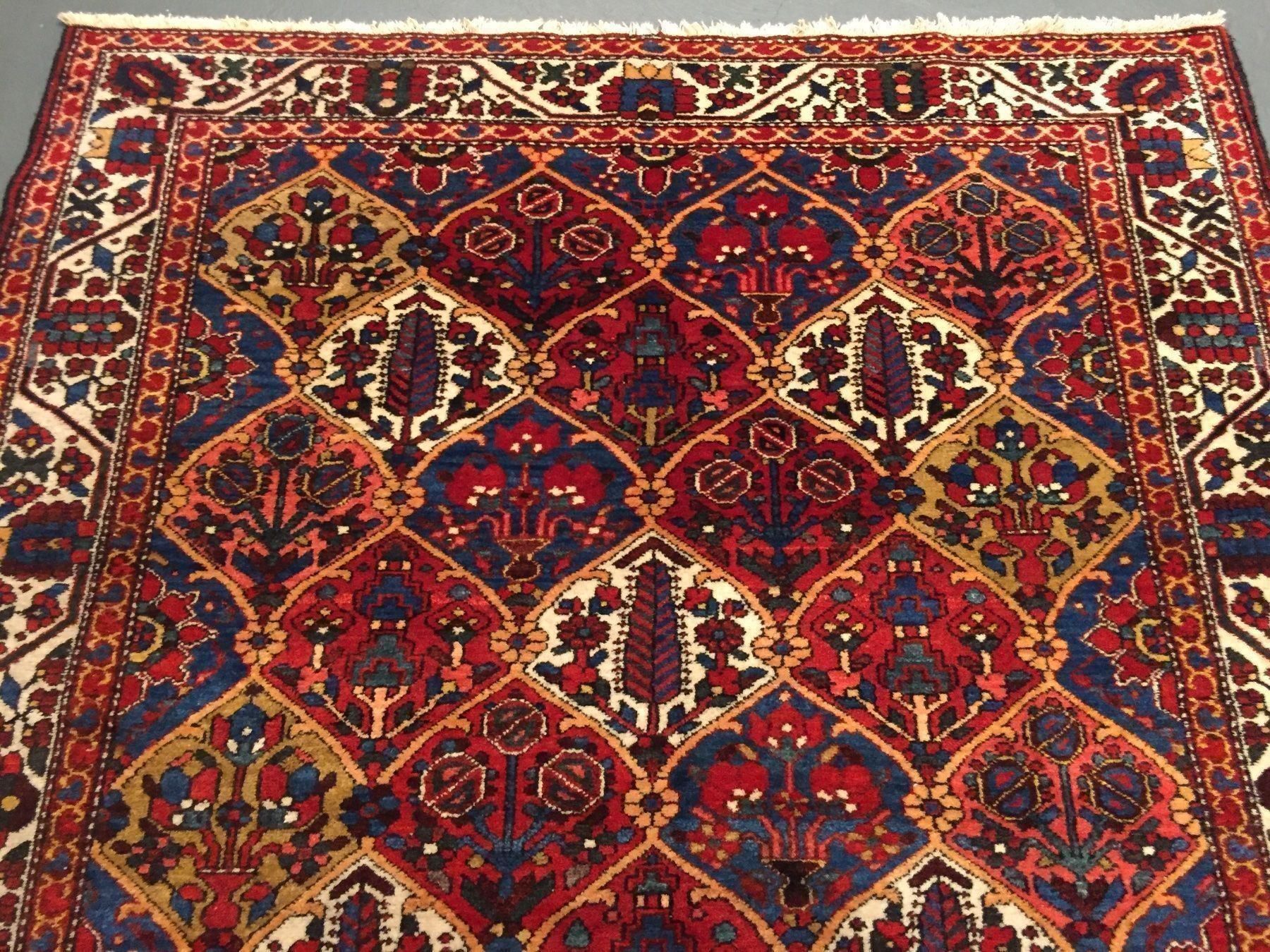 Bachtiar Indisch 249x340 (einen Teppich für soviel Geld ungesehen zu kaufen) Wünschen würden wir uns etwas mehr Information über den Herkunftsort des Teppichs (nicht nur das Land) und über die verwendeten Materialien, also Qualität der Wolle und der verwendeten Farbstoffe. Übersicht von Bachtiar Der Garten im Teppich Alle Formate Halbnomaden und Bauern im südlichen Persien stellen diesen bekannten und sehr beliebten Teppich her Typische für dieses Region und diesen Teppich sind geometrische Grundmuster mit einer floralen Musterung Eines der bekanntesten Muster ist der Gartenbachtiar, welcher in meist quadratischen Kästchen ein florales Motiv hat. Marvellous and genuine Bachtiar( or Bakhtiari) rug from Iran (Persia) Very resistant, natural warm colours, With certificate of authenticity & expertise Fast and insured shipping via UPS, DHL, Fedex or GLS This captivating Bakhtiari carpet is among the finest of this perpetually popular style that have seen It excels in its dazzling array of colors, including seldomfound exotic tones of.