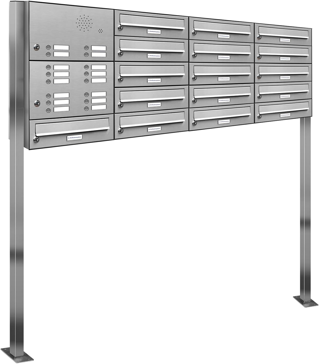 Al Briefkastensysteme 16er Briefkasten Mit Klingel Standbriefkasten Modern 16 Fach Briefkastenanlage In V2a Edelstahl Postkasten Amazon De Baumarkt