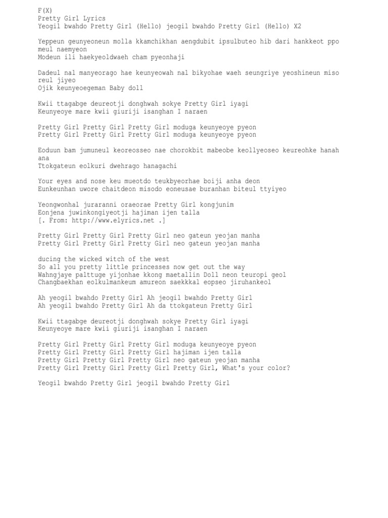 F X Pretty Girl Lyrics Color Coded Lyrics Lyrics At Ccl