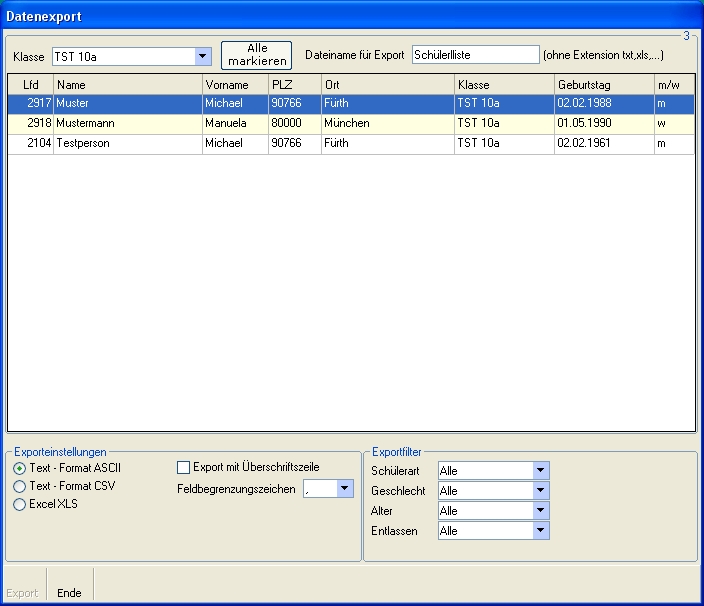 Export Schulerlliste