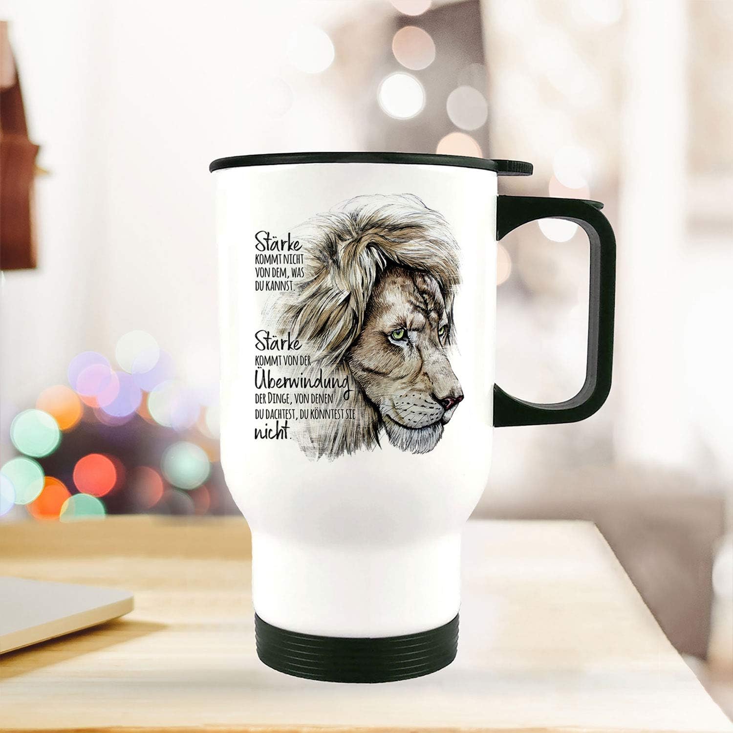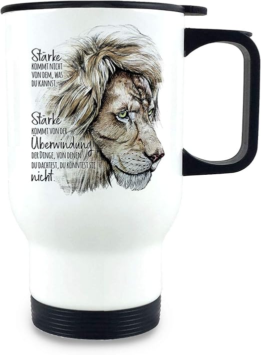 Ilka Parey Wandtattoo Welt Thermobecher Isolierbecher Lowe Lowenkopf Spruch Starke Kommt Von Uberwindung Kaffeebecher Geschenk Tb236 Amazon De Kuche Haushalt
