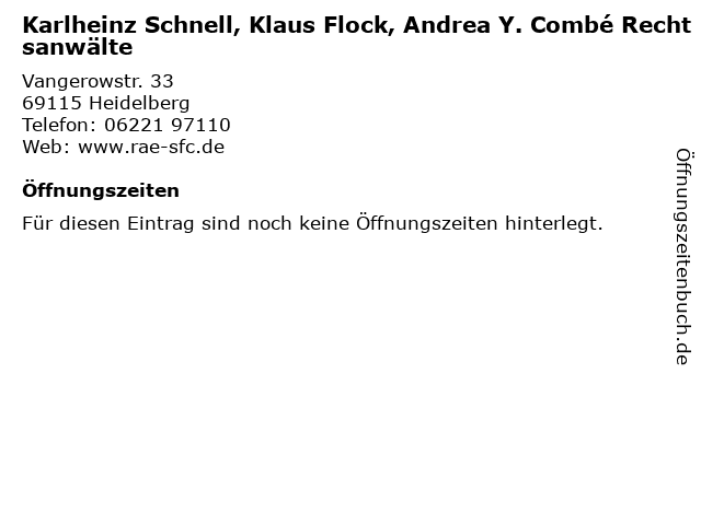 ᐅ Offnungszeiten Karlheinz Schnell Klaus Flock Andrea Y Combe Rechtsanwalte Vangerowstr 33 In Heidelberg