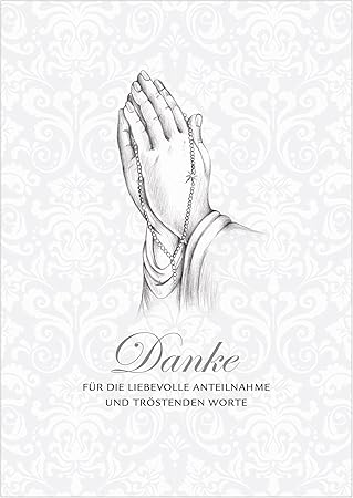 Kondolenzkarte Danke Fur Die Liebevolle Anteilnahme Und Trostenden Worte Trauerkarte Mit Ornamenten In Grau Und Betende Hande Als Zeichnung Mit Umschlag 8 Amazon De Burobedarf Schreibwaren