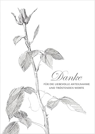 Dankeskarte Beileidskarte Kondolenzkarte Mit Einer Rose Als Tuschezeichnung In Schwarz Text Danke Fur Die Liebevolle Anteilnahme Und Trostenden Worte Mit Umschlag 4 Amazon De Burobedarf Schreibwaren