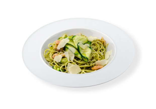 Zucchini Spaghetti Mit Raucherlachs Und Pistazien Pesto Rezept Ichkoche At