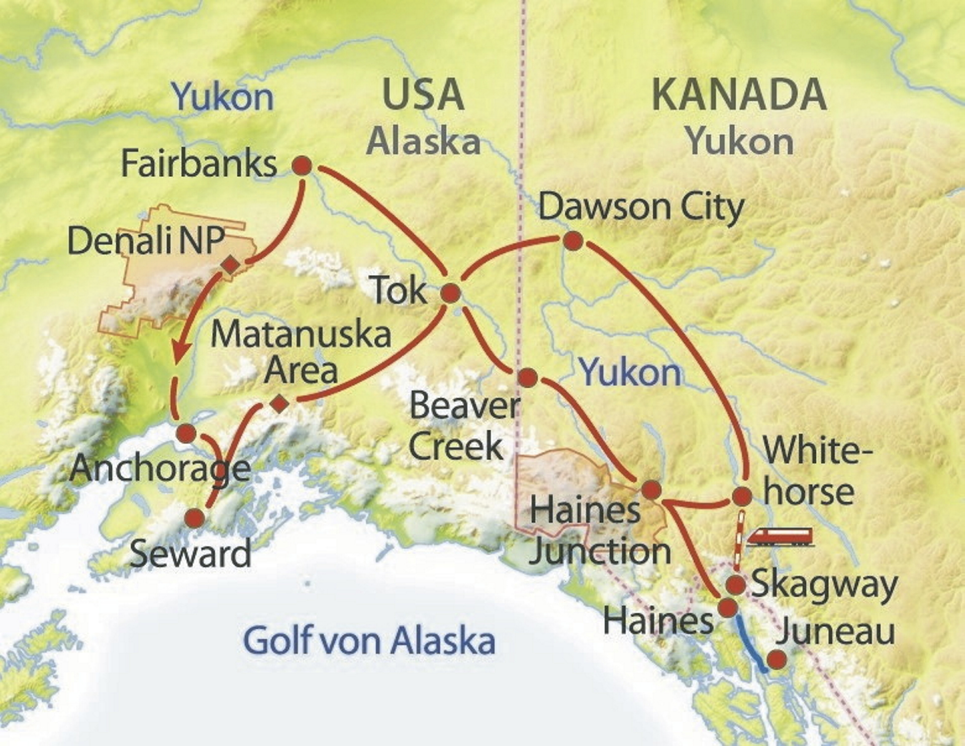 Ihre Rundreise Alaska und seine Nationalparks entdecken Im Zentrum Alaskas bietet der Nationalpark Denali faszinierende Einblicke in die heimische Tier und Pflanzenwelt Rund um den höchsten Berg Nordamerikas lassen sich bei Wanderungen oder Rundfahrten die von ausgedehnten Wiesen und Wäldern geprägte Vegetation sowie Elche, Grizzlys und. Go Wild in Alaska und Yukon Bei einer Rundreise durch Kanada und Alaska kommt echte Goldgräberstimmung auf Um die großen Entfernungen zu überbrücken empfiehlt sich eine Flugrundreise Einige der schönsten Landschaften und Nationalparks erwarten Sie mit Gletschern und hohen Bergmassiven. Mit TUI CAMPER Alaska und den Yukon entdecken – 6000 m hohe Bergketten, Wildnis mit reicher Tierwelt, einsame Küsten – mit dem Wohnmobil in unberührte Naturlandschaften.