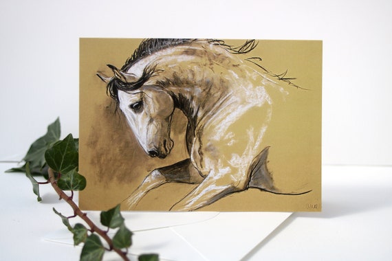 Graue Pferd Grusse Karte Reitkunst Geburtstagskarte Pferde Etsy