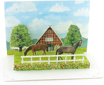 Pop Up Karte Pferde Vor Einem Bauernhof Ideal Als Als Geburtstagskarte Fur Reiter Oder Einladungskarte Fur Den Poyhof Amazon De Burobedarf Schreibwaren
