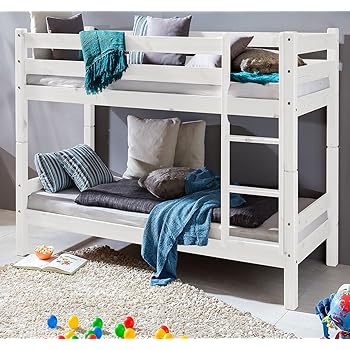 Amazon De Homeline Weiss Kinderbett Etagenbett Massiv Hochbett Spielbett Stockbett 90x0 Cm