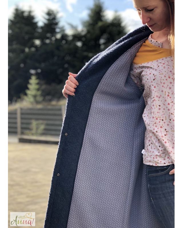 Sie hat unseren Basic Strickmantel mit Revers Add on genäht 😱😱😱 ️ Toll, oder??.