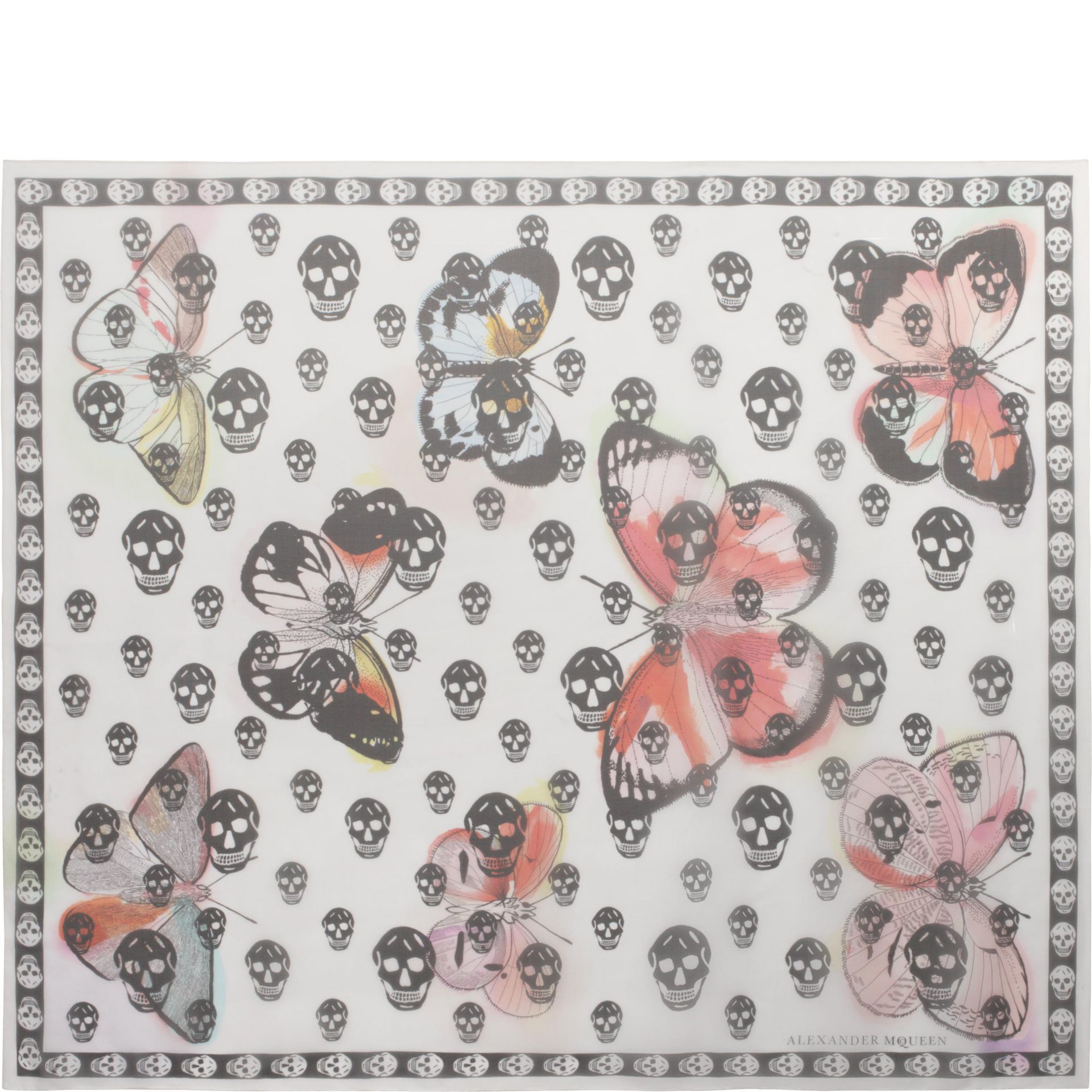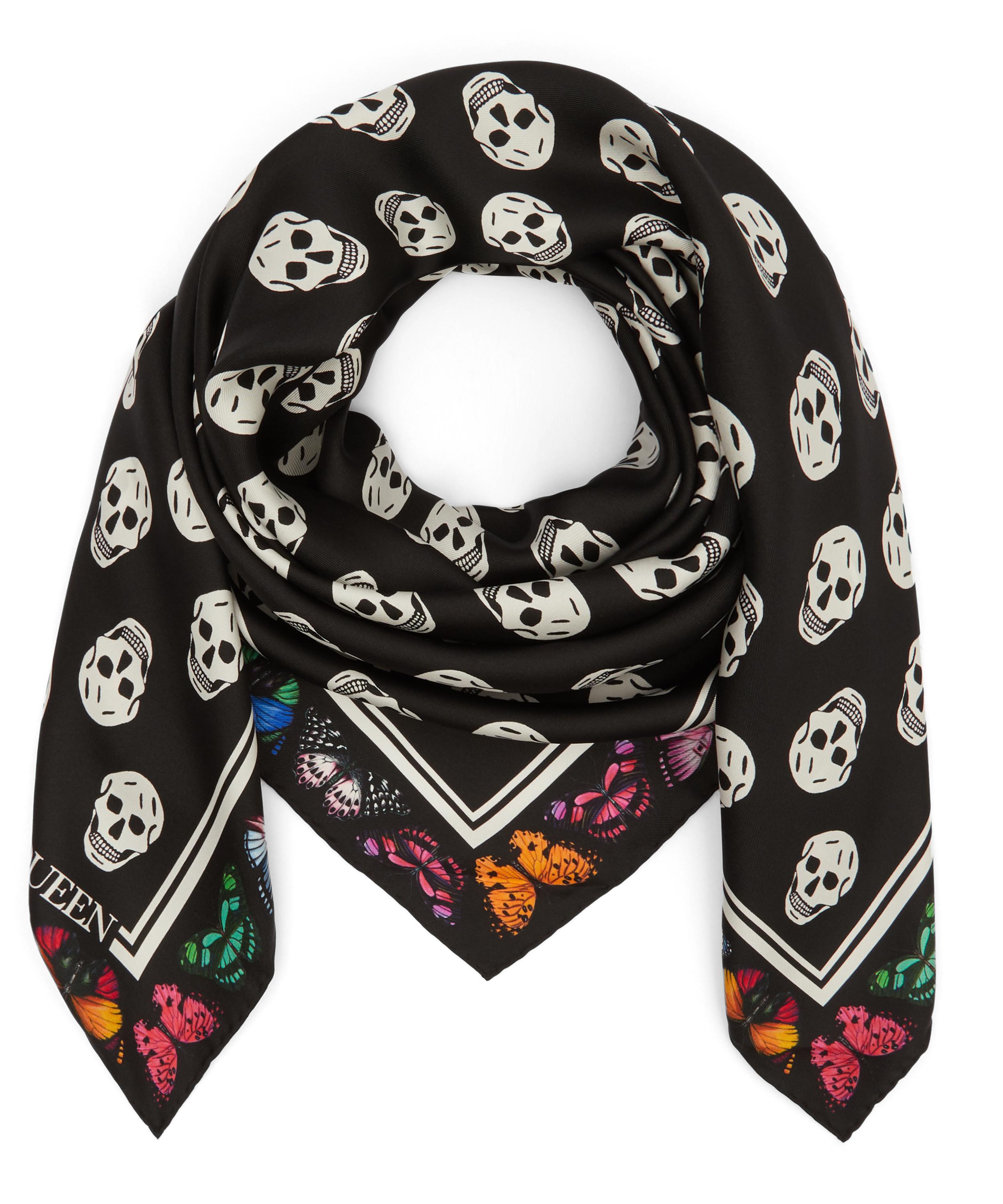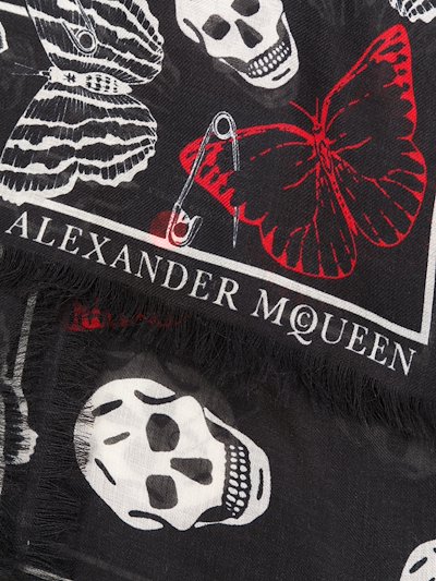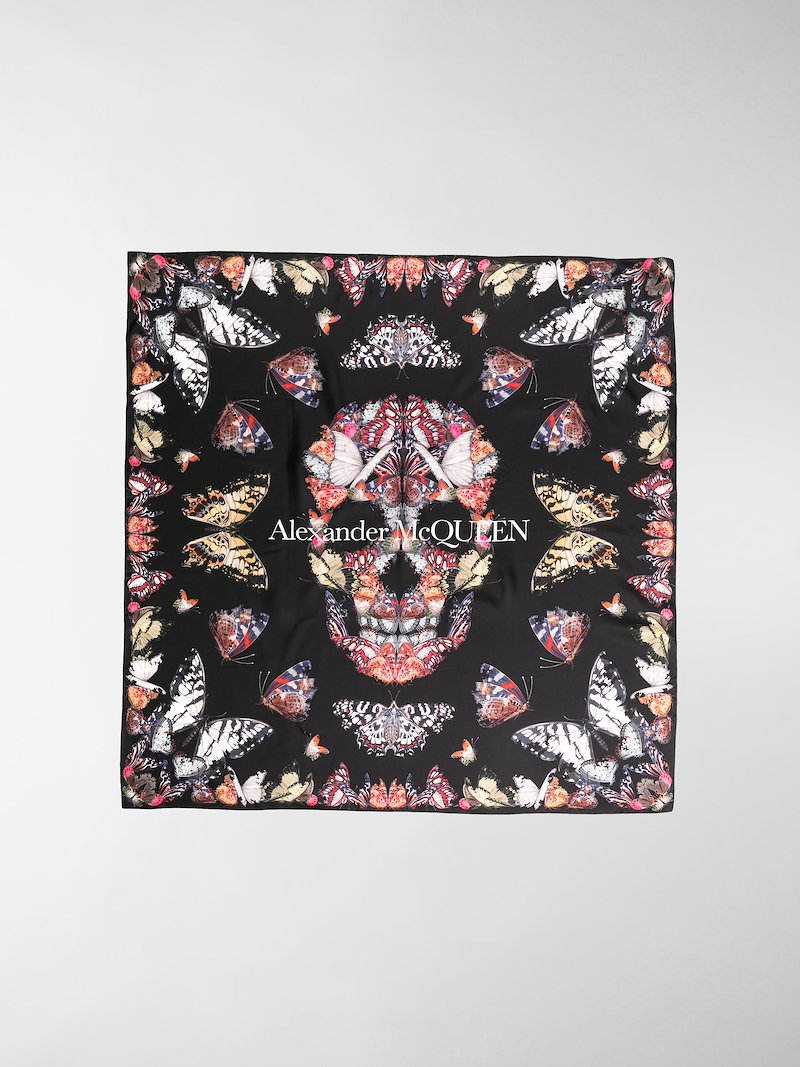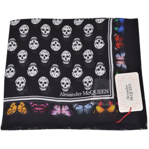 Shop Alexander Mcqueen Women's Butterfly Decay Silk Scarf In White from 300 stores, starting at $350 Similar ones also available On SALE now!. Biker skull scarf in a black and ivory allover skull print featuring a butterfly border with frayed edges finished with an Alexander McQueen signature Material 100% Modal Product code. Get the lowest price on your favorite brands at Poshmark Poshmark makes shopping fun, affordable & easy!.