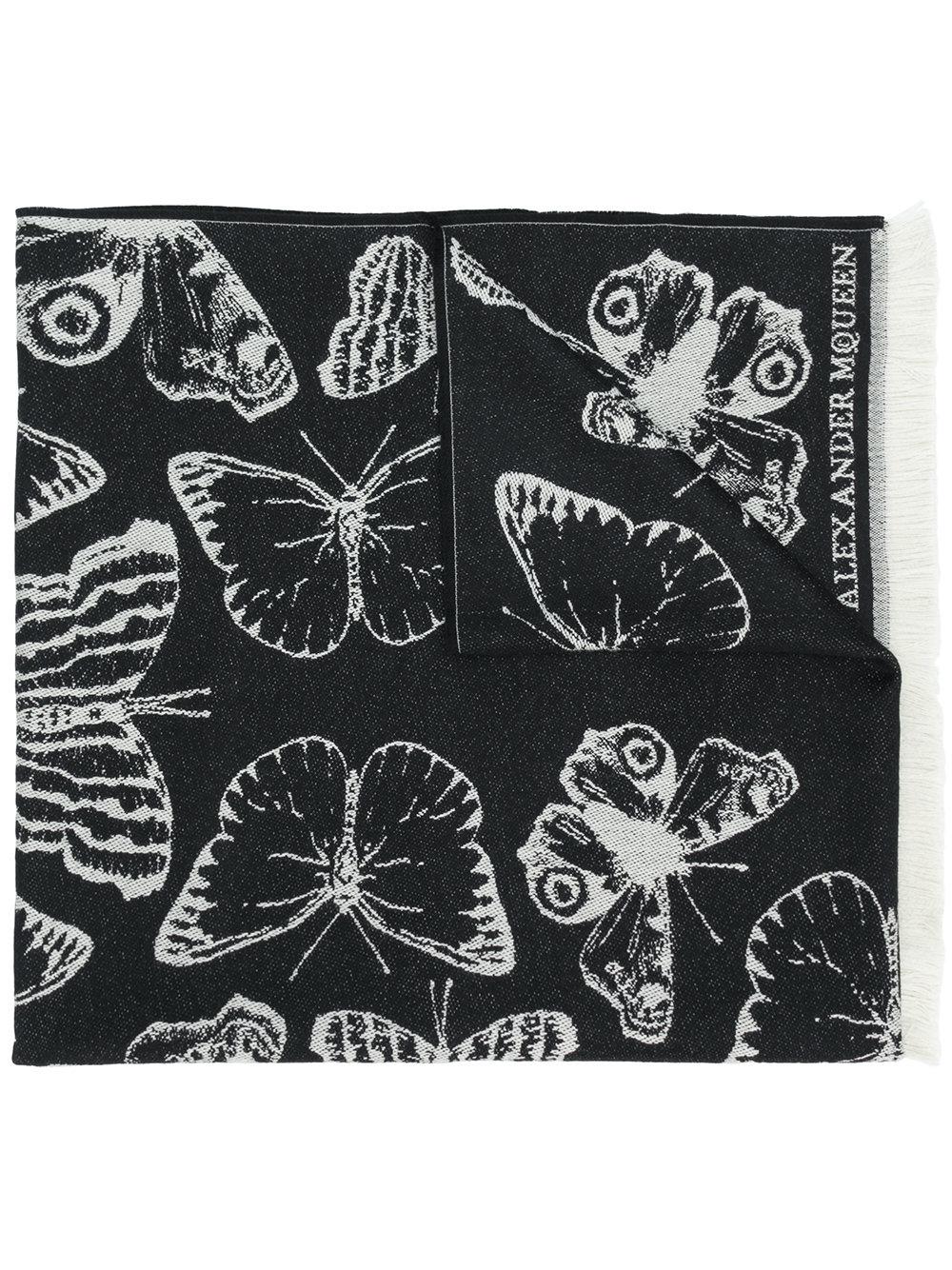 Black Alexander Mcqueen Butterfly Print Scarf For Women Farfetch