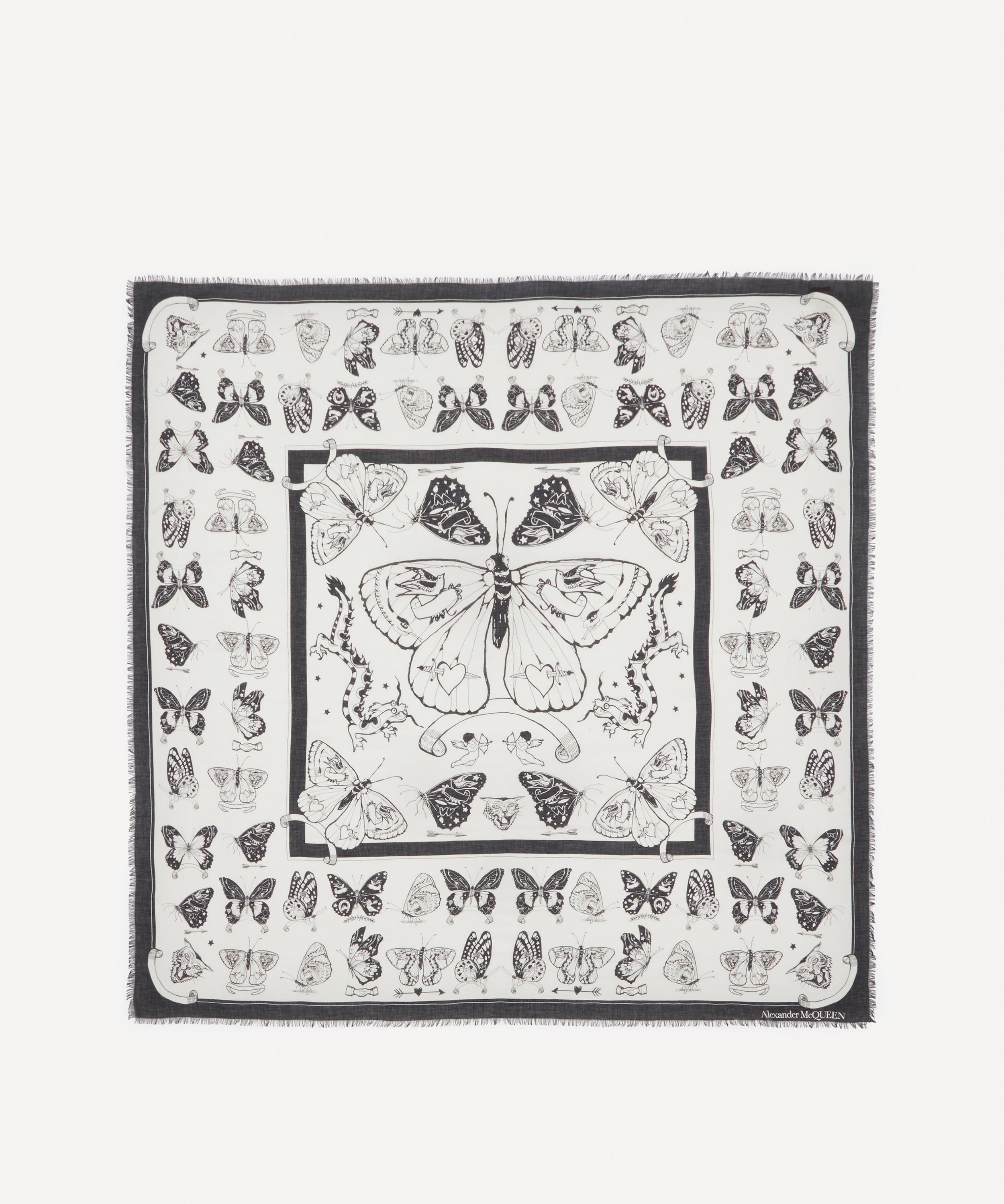 Ivory silk twill scarf featuring an engineered multicolored butterfly border with Alexander McQueen signature Silk twill;. Buy Alexander McQueen Butterfly Bike Scarf at SaksFifthAvenue Shop our collection of Alexander McQueen ColdWeather Accessories online and get free shipping!. Butterfly scarf for Women to buy on myCOMPANEROcom Free delivery on orders over 400€.