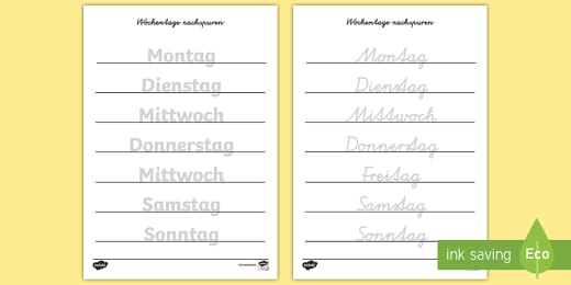 Wochentage Arbeitsblatt Erstes Schreiben Worter Nachspuren