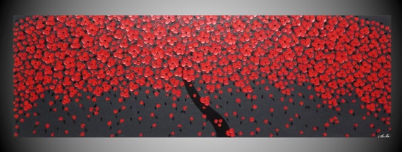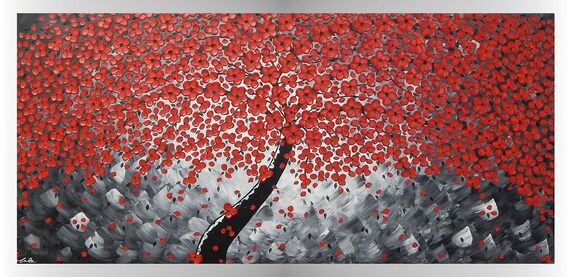 Abstraktes Acrylbild Baum Mit Roten Blumen Kunst Wand Etsy