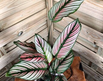 What You Will Receive Plant grown in a 4" container Light Bright indirect light Water Keep moist Color Green, Purple, Pink, Blue Shipping Because of USDA regulations plants are shipped bareroot to TX, CA, WA, OR, NM, AZ, NV. Calathea white star #houseplants #plantcare #interiordecoration #plantlife #livingwithplants #plantlady #plantsmakepeoplehappy Saved by bitter root vintage 18k Green Plants Tropical Plants Potted Plants White Plants Plant Pots Foliage Plants Cool Plants Plantas Indoor Plant Aesthetic. Calathea White Star plants have beautiful variegated leaves with pink stripes Keep in bright, indirect light and keep soil moist during growing season Comes in a 4" plastic nursery pot.