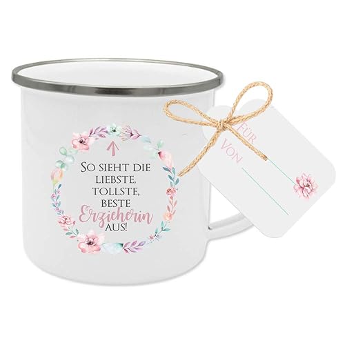 Geschenk Fur Erzieherin Dankeschon Tasse Mit Anhanger Und Spruch So Sieht Die Liebste Tollste Beste Erzieherin Aus Amazon De Handmade