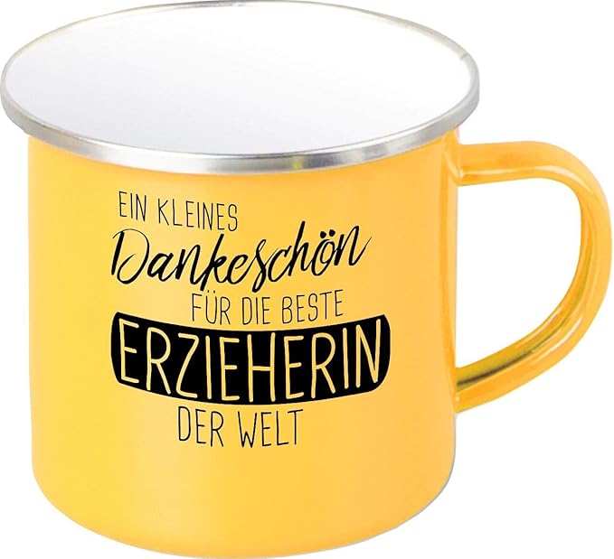 Shirtinstyle Emaille Becher Ein Kleines Dankeschon Fur Die Beste Erzieherin Der Welt Lehrer Lehrerin Erzieher Erzieherin Spruch Schule Hort Kita Kindergaten Farbe Gelb Amazon De Kuche Haushalt