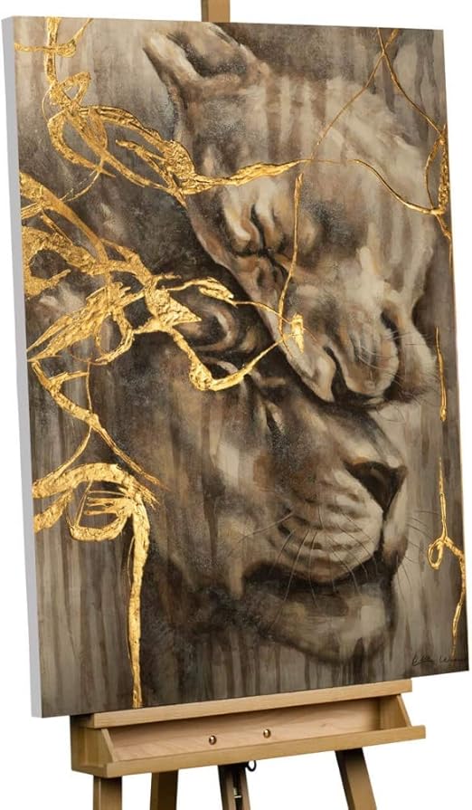 Kunstloft Acryl Gemalde Hoheitsvolle Liebe 75x100cm Original Handgemalte Leinwand Bilder Xxl Raubtiere Gold Grau Wandbild Acrylbild Moderne Kunst Einteilig Mit Rahmen Amazon De Kuche Haushalt