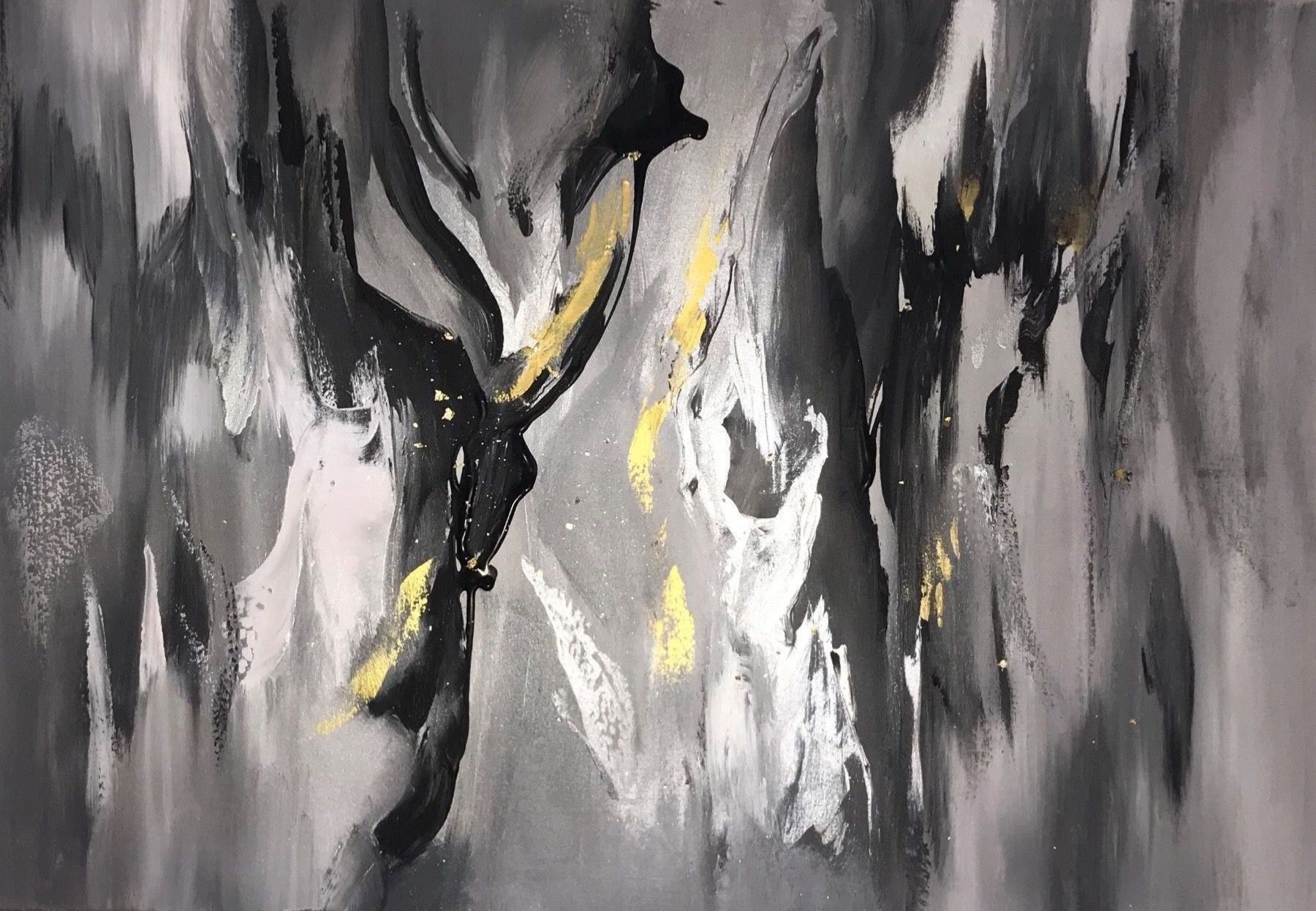 Bild Schwarz Weiss Grau Gold Acrylbild Unikate Handgemalt Etsy
