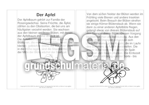 Lesetext Apfel In Der Grundschule Mini Bucher Lesetexte Lapbook Herbst Herbst Jahreszeiten Hus Klasse 2 Grundschulmaterial De