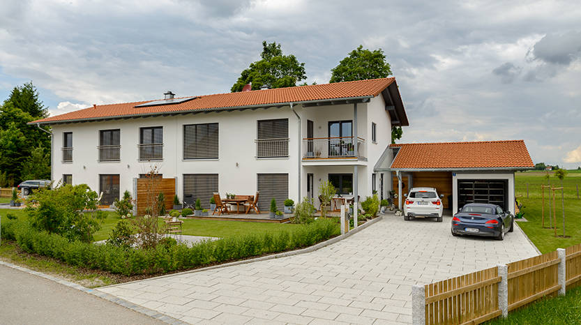 Doppelhaus Zeitlos Und Elegant Mehrgenerationshaus Niedrigenergiehaus Fertigteilehaus Fertighaushersteller Fertighausanbieter Bayern Baden Wurttemberg Deutschland Germany Fertighaus Fertighauser Holzhaus Haus Schlusselfertig Bauen Planen