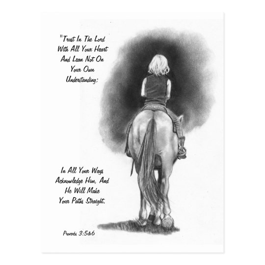 Madchen Auf Pferd Bleistift Kunst Bibel Vers Postkarte Zazzle De