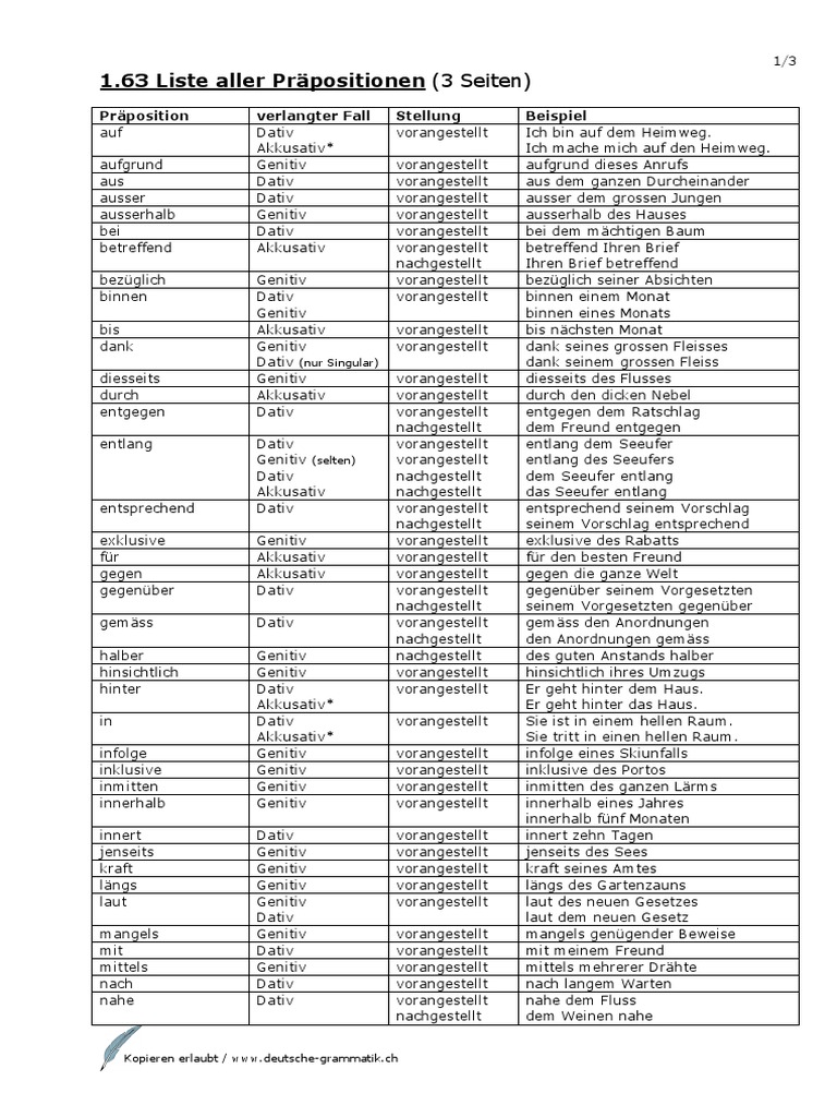 Grammatik / Leseverstehen / Übungen Niveau Lösungsschlüssel Präpositionen mit Akkusativ Übung 01 A) Präpositionen einsetzen 01 Ingo will ohne einen Cent in der Tasche nach Spanien fahren 02 Meine alte Großmutter kann ohne ihre Brille fast nichts mehr sehen 03. Kostenlose Übungen und Arbeitsblätter für Deutsch als Fremdsprache / Deutsch als Zweitsprache (DaF / DaZ) zum einfachen Download und Ausdrucken als PDF. Die folgenden Übungen orientieren sich inhaltlich an den Lernfeldern des DaZLehrplans, der 02 in Bayern für alle Schularten eingeführt und dessen Konzept, das auf Lebens und Schülernähe zielt, „lokale und temporale Präpositionen“ für Schüler mit Grundkenntnissen der deutschen Sprache sowie.