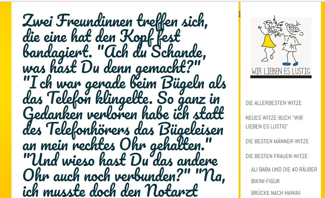 Mehr Infos im Web http//wwwsat1de/tv/knallerfrauenJetzt abonnieren http//wwwyoutubecom/subscription_center?add_user=Knallerfrauen Na, was vergessen?,. Lustige Sachen zum Thema bügeln Suchergebnisse 1 bis 17 von insgesamt 17. Ein Mann fährt in einem AufzugIrgendwo steigt eine Frau zu und sie fahren zusammen weiter Plötzlich bleibt der Aufzug stecken Die Frau schaut ihn verführerisch an, leckt sich langsam über die Lippen, zieht Bluse und BH aus und meint schließlich zu ihm "Los, mach, dass ich mich wie eine richtige Frau fühle!" Der Mann überlegt kurz, knöpft dann sein Hemd auf, schmeißt es auf den.