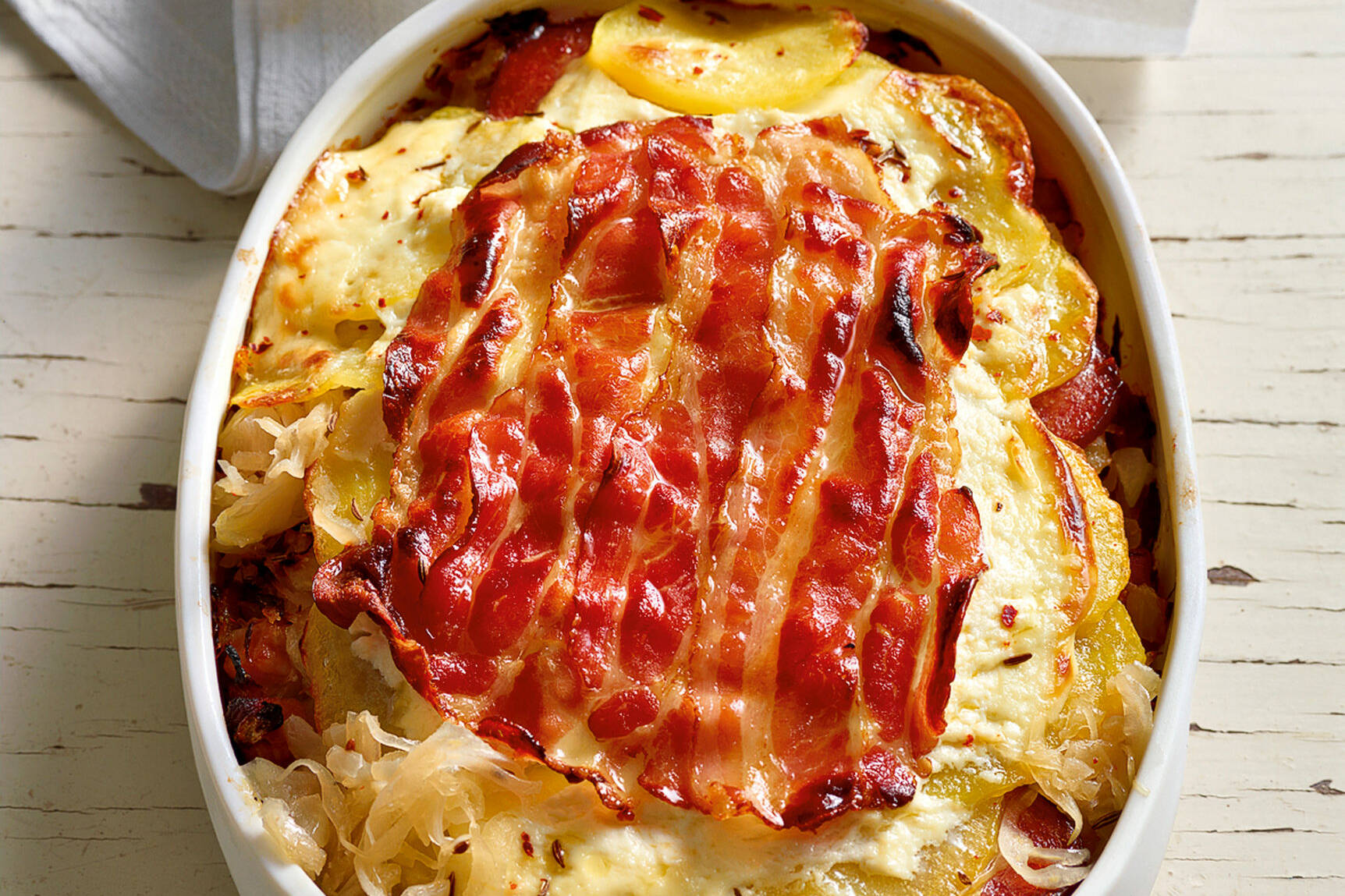 Was Koche Ich Heute Cremig Knuspriger Rosti Auflauf Mit Kassler Und Sauerkraut Genuss
