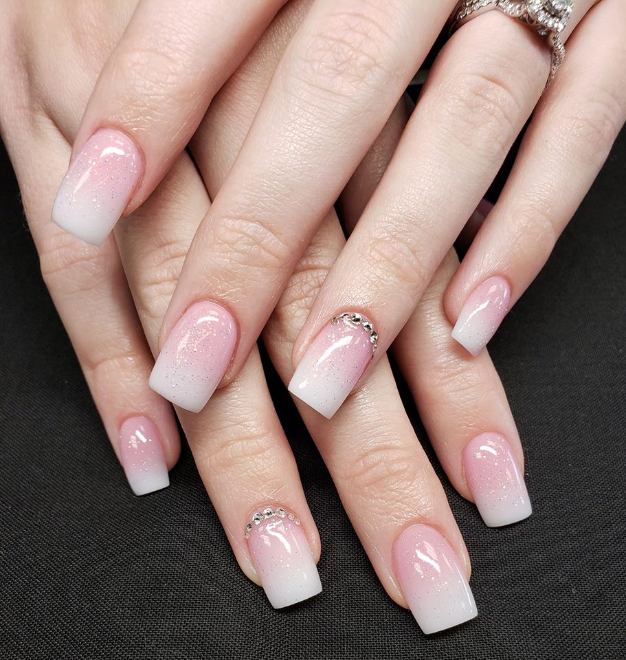 Baby Boomer Nails Glitter Diamantes Gems Acrylic Love Beautiful Baby Boomer Nails Nageldesign