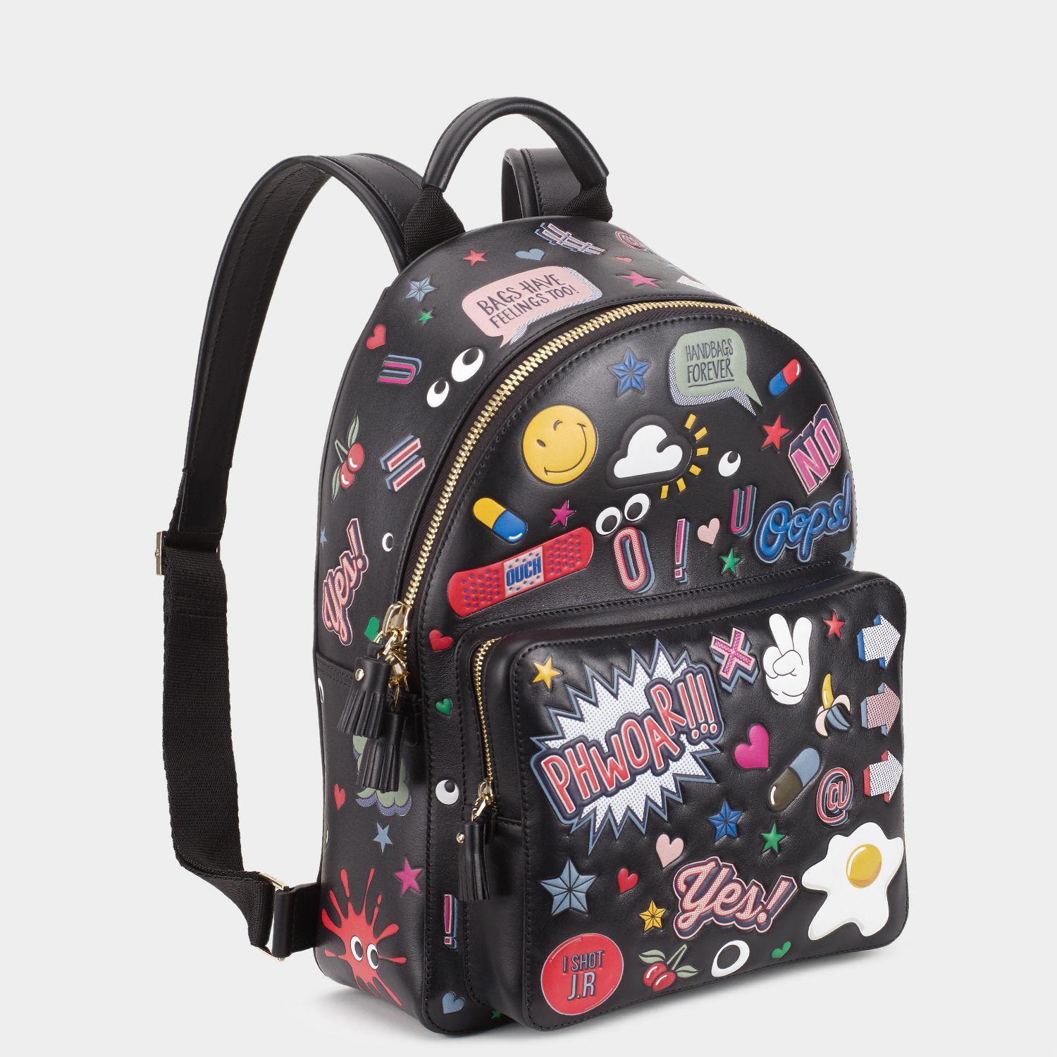Anya Hindmarch All Over Stickers Mini Leather Backpack In Black Modesens
