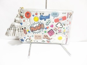 Auth Anya Hindmarch Georgiana All Over Stickers 257s Silver Leather Clutch Bag Ebay