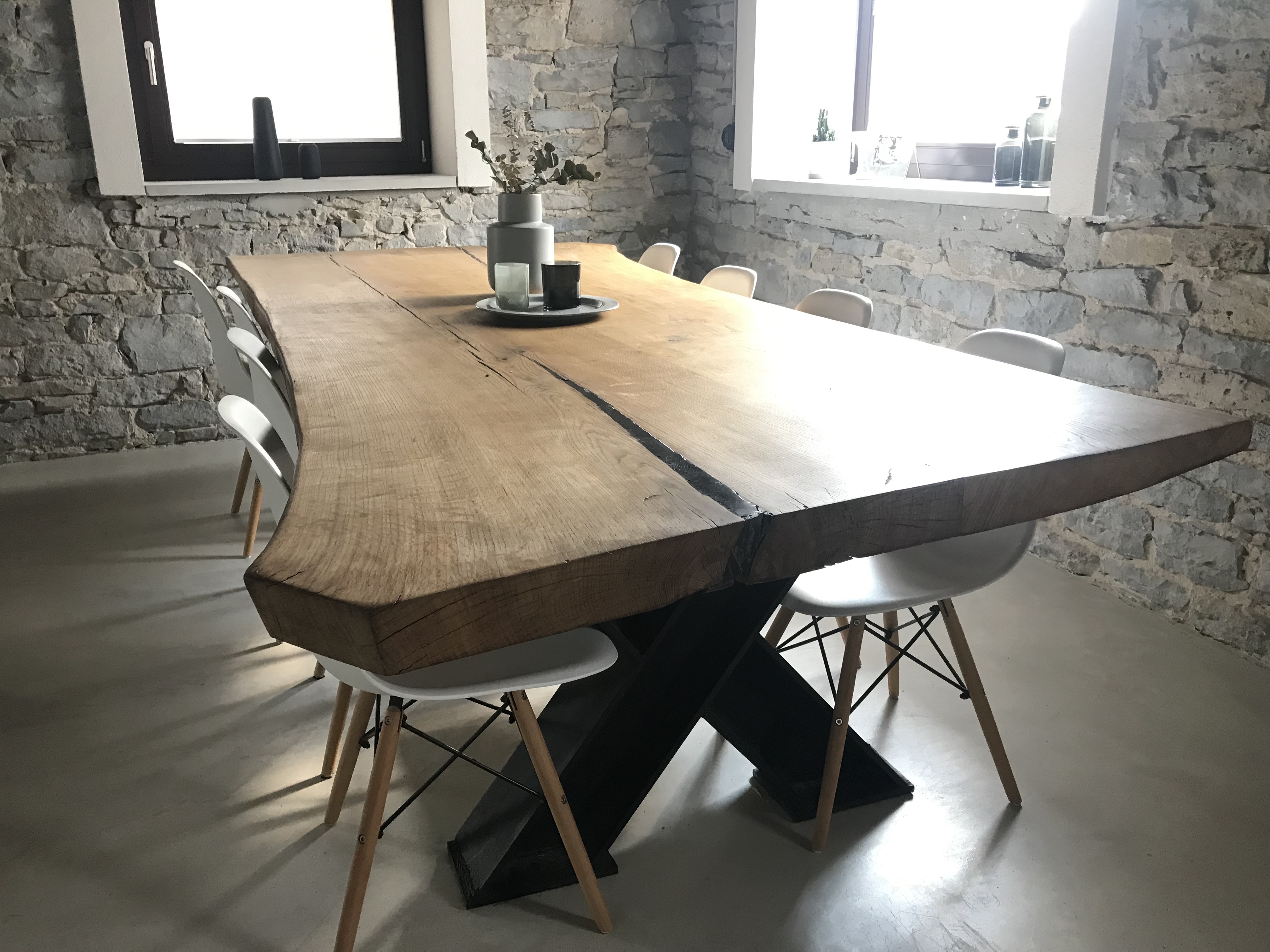 Esszimmertisch Esstisch 140x90 Platte Plankeneiche Gestell Schwarz Greiff