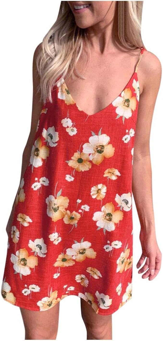 Longra Sommerkleider Damen Armelloses Spagettitragern Strandkleid Elegant V Ausschnitt Strandkleid Mode Cami Blumenkleid Freizeit Kleid Amazon De Bekleidung