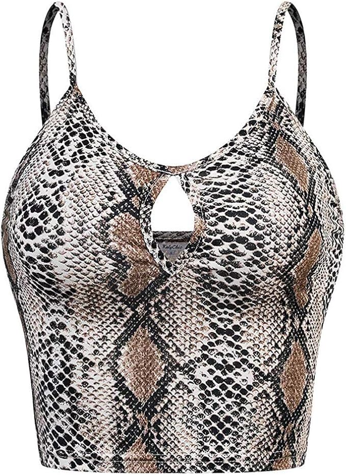 Qiamay Frauen V Ausschnitt Armellose Schlangenhaut Print Sexy Loch Crop Top Cami Mode Front Ausschnitt Schlusselloch Kurze Bluse Amazon De Bekleidung