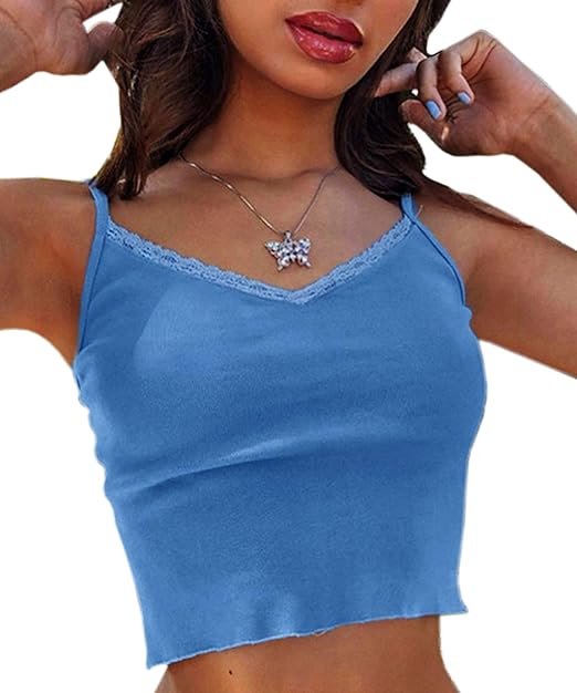 Safrisior Damen Spitzen Crop Cami Top Blumendruck Spaghettitrager Crop Cami Weste Mode Tops Blau Mittel Amazon De Bekleidung