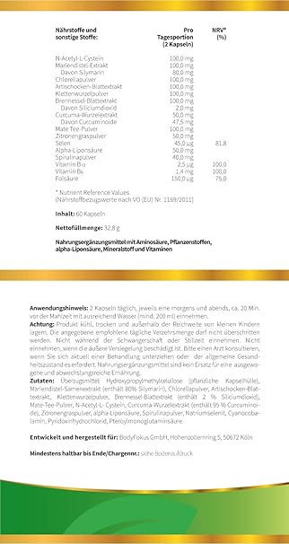BodyFokus Test und Vergleich 21 » ⭐ Testsieger bzw Vergleichssieger aus Haushalt BodyFokus Clean Body Restart zu Stiftung Warentest!. Achtung Clean Body Restart wirkt bei jedem Menschen verschieden schnell und unterschiedlich gut, je nachdem was die zugrundeliegenden Ursachen sind und wie der Körper darauf reagiert Nicht bei Jedem ist eine Entgiftung nötig Wenn du regelmäßig Medikamente mit möglichen Wechselwirkungen einnimmst oder an Lebensmittelallergien leidest, solltest du eine Einnahme erst mit deinem Arzt. 2 Kapseln täglich, jeweils eine morgens und abends ca Min vor der Mahlzeit, mit ausreichend Wasser (mind 0 ml) einnehmen.