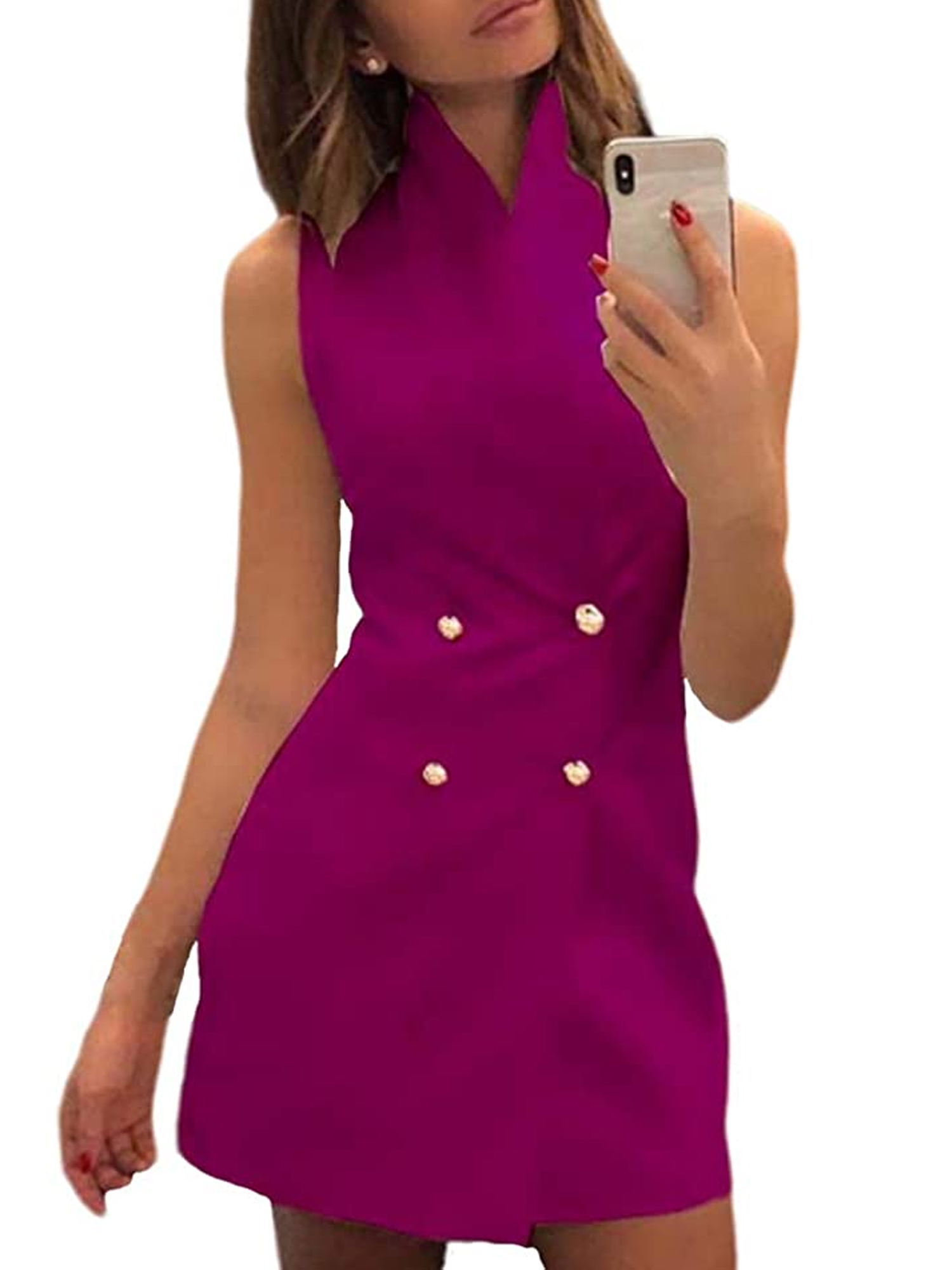 Mersariphy Mersariphy Women Solid Color Sleeveless V Neck Slim Fit Button Suit Vest Dress Walmart Com Walmart Com