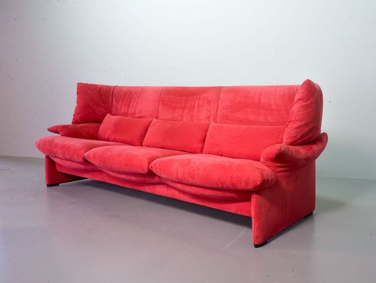 Italienisches 3 Sitzer Portovenere Sofa Aus Kirschholz Rotem Samt Von Vico Magistretti Fur Cassina 1980er Bei Pamono Kaufen