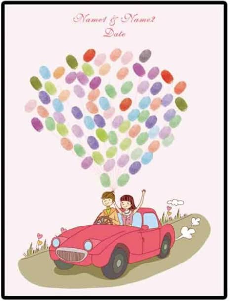 Pandaboom Brautigam Braut Hochzeit Auto Fingerabdruck Zeichen In Malerei Hochzeit Fingerabdruck Diy Finger Malen 50x70cm Amazon De Kuche Haushalt