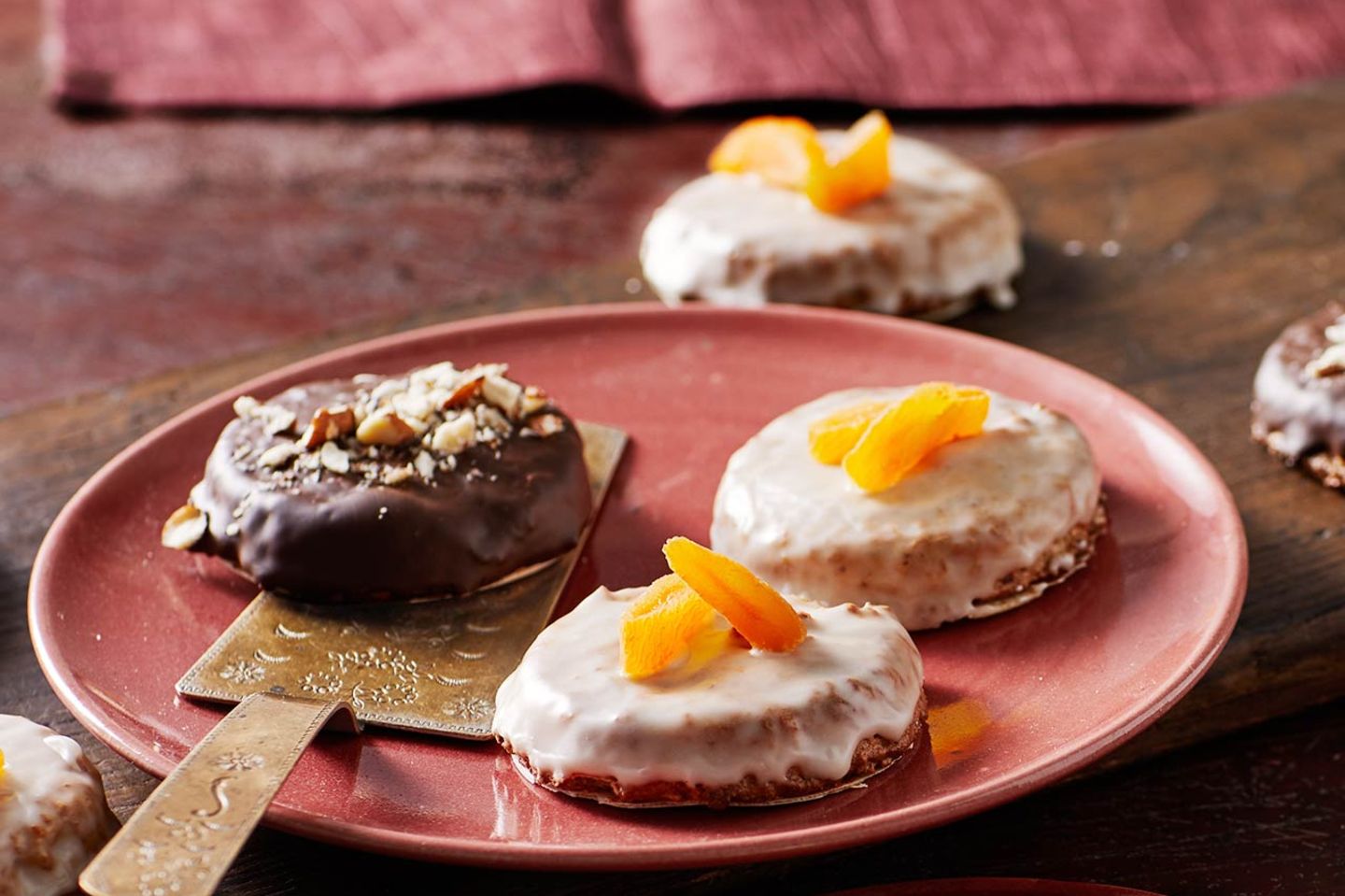 Place the Lebkuchen on the baking sheet lined with parchment paper Bake at 150 degrees C for about minutes After cooling, cover with melted chocolate or sugar icing. 9 Lebkuchen bei 175 C ca 22 Minuten auf mittlerer Schiene bei Ober/Unterhitze backen 10 Nach dem abkühlen mit Kuchenglasur oder Zuckerguss glasieren Diese Rezept ergibt ca 50 kleine Lebkuchen je ca g Ich wünsche Euch Gutes gelingen und viel Spaß!. Luzerner Lebkuchen 45 (30 ratings) Sign up for free Difficulty easy Preparation time 15 min Total time 55 min Serving size 8 Stücke Difficulty Most of our recipes are easy Those that require a little more time or cooking ability are rated medium or advanced Preparation time.