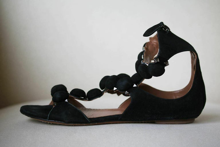 Azzedine Alaia Black Suede Bombe Flat Ankle Sandals Studded Pumps 36 5 Shoes Ebay