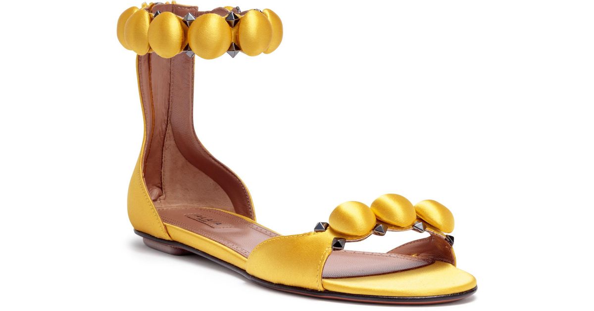 Alaia Bombe Studded Satin Sandals Yellow Womens Yellow Sandals Gasparo Brand